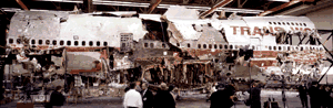 |  | TWA Flight 800 took off in July, 1996, from New York City, bound for Paris, France.  It exploded in midair and was thought to be shot down by a missle.  In 1997 investigators have shunned the friendly fire theory.  They now believe that the cause was an electrical failure in the fuel tank which caused the fuel to explode. |