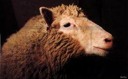 |  | Dolly, a sheep, was the first mammal cloned from a cell from an adult animal.  She was cloned in Scotland at the Roslin Institute in February, 1997. |