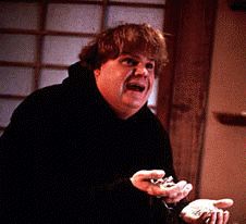 | Chris Farley dies at the age of thirty-three.  He overdosed on cocaine and morphine after years of binging.  He died in Chicago in December of 1997.  A great comedian and obese friend of many, he will be sorely missed by everyone.  He had idolized John Belushi, who also died at the age of thirty-three. |  |