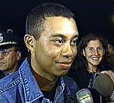 |  | Tiger Woods captured the "Green Jacket" at the Masters golf tournament by a record of twelve strokes.  He was the youngest player to win the Masters at the age of twenty-oneand was also the first black person to win. |